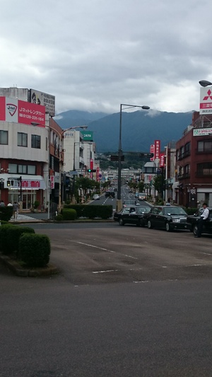 JR中津川駅前広場から・・隠れてしまいましたが右側手前角のビル屋上に 三菱太陽光発電の立て看板が・・三菱電機中津川製作所で生産では・・ |
